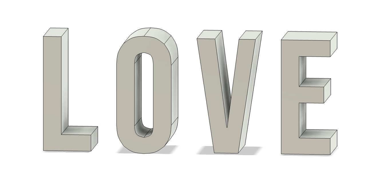 I wanted the letters to only key into their matching slot, and also stand easily when not in the box, so I modeled letter-shaped bases for them.